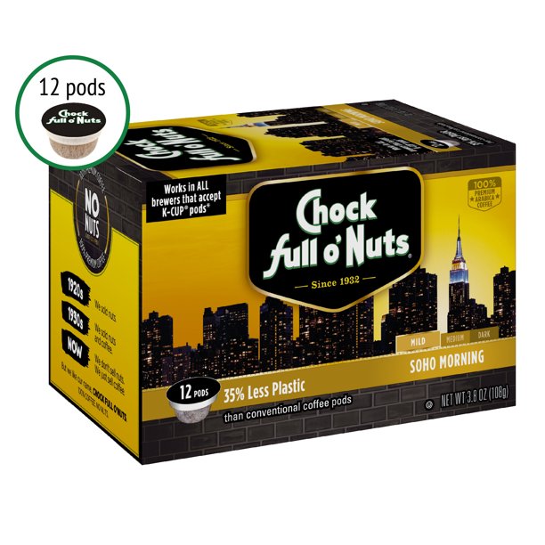 Chock Full O'Nuts Soho Morning K-Cup Coffee Pods, Mild Roast, 12 Count